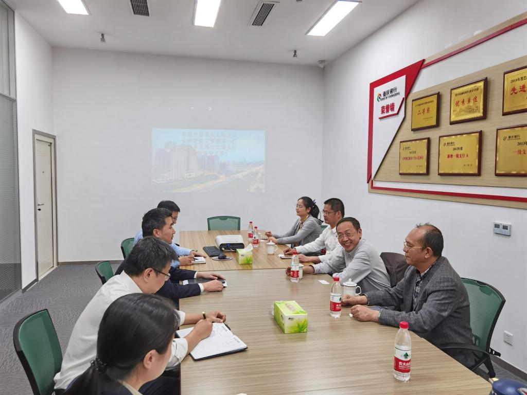 11月16日下午,76net必赢线路检测中心党委书记、副院长王建明、校友分会会长刁孝华教授、专业教师代表樊国昌教授和梅德祥副教授、校友会秘书长杨佳妮老师一行走访了重庆银行,受到1997级货币银行学校友、重庆银行巴南支行行长王翔的热情接待。