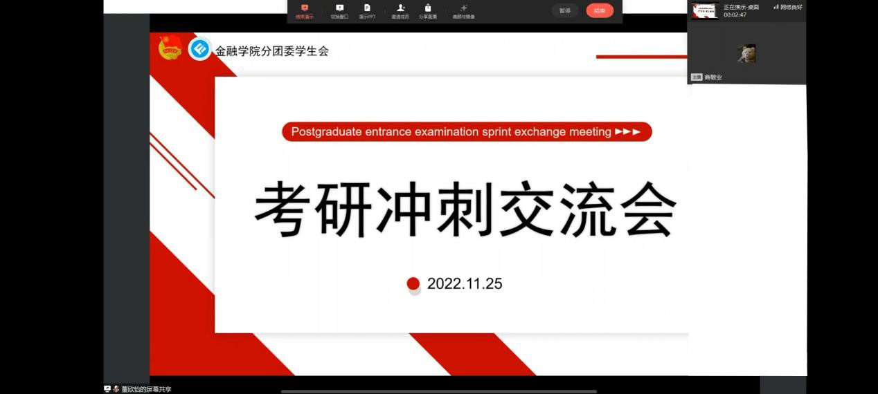 距2023年全国硕士研究生招生考试仅剩一个月,为给2023届考研学子加油鼓劲,助力考研学子坚定信心、调整状态、科学合理安排冲刺阶段的备考,11月25日19:30,76net必赢线路检测中心在企业微信线上举办考研冲刺交流会。76net必赢线路检测中心党委书记、副院长石世明,76net必赢线路检测中心党委副书记、纪委书记余新参加了会议。同时邀请2022届考研成功的优秀校友为同学们分享经验,鼓舞信心。