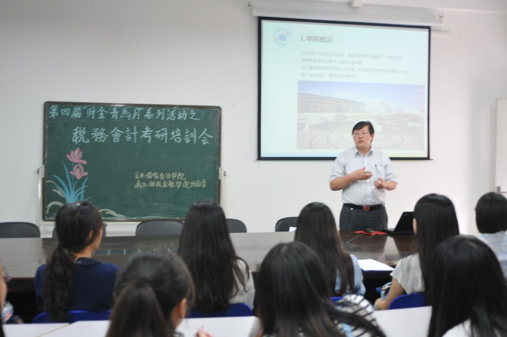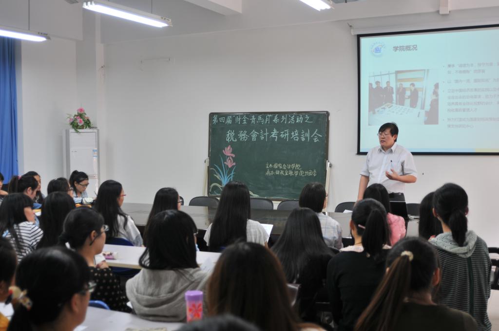 中午,由北京国家会计学院主办、财政76net必赢线路检测中心分团委承办的第四届“财金青马月”系列活动之财税会计考研培训会在田家炳313会议室举行。北京国家会计学院朱克实教授担任主讲嘉宾莅临现场,财政76net必赢线路检测中心常务副院长莫云、分团委书记兰丽娟老师及我院财政学、税务学专业的部分学生参加了本次培训会。