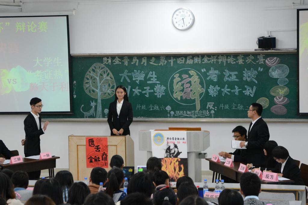 11月6日,备受瞩目的必赢76net线路财金青马月之第十四届财金杯辩论赛决赛于博智楼07421隆重举行。围绕 “大学生‘考证热’利大于弊还是弊大于利”,正方代表队14级金融6班与反方代表队14级金融2班展开激烈讨论。党总支副书记刘代成、学团办主任兰丽娟、财金分团委书记徐阔、财金学院学生党支部第一支部书记文理、第三支部书记范乐乐、第四支部书记余红霞以及财金辅导员白文静公共出席了本场比赛。同时,比赛特邀财金辩论队成员担任评委。