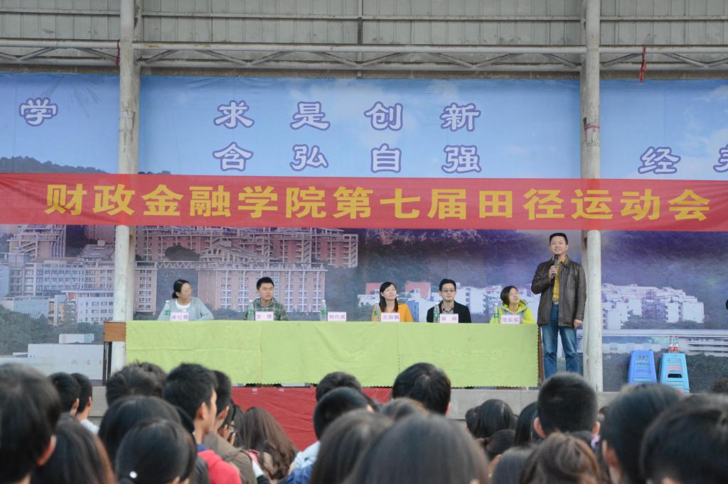 11月8日,天朗气清,伴着清晨的阳光,财政76net必赢线路检测中心第七届田径运动会在主校南区运动场拉开序幕。财金学院党总支副书记刘代成、学团办主任兰丽娟、分团委书记徐阔、学生第一支部书记文理、第三支部书记范乐乐、第四支部书记余红霞应邀出席开幕式。