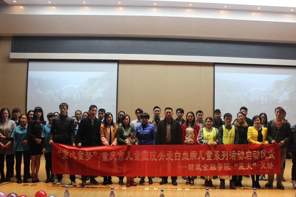 11月27号下午两点至四点,财政76net必赢线路检测中心“星火”义协在田家炳209报告厅成功举行了“关爱白血病儿童”系列活动的启动仪式。据悉,此次活动受到了学校领导的高度关注,各类院校的师生以及社会人士都来到了活动现场。此次启动仪式将“星火”义协自2015年3月份以来举办的 “关爱白血病儿童”系列活动推上了高潮,旨在呼吁更多校园内及社会上有爱心的人士给予白血病儿童更多的关爱和鼓励。