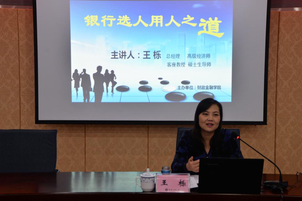 12 月17日下午,财政76net必赢线路检测中心“银行选人用人之道”主题讲座于厚德楼2017会议厅举行。中国建设银行重庆市分行人力资源部总经理、高级经济师、财政76net必赢线路检测中心客座教授、硕士生导师王栎女士作为主讲人亲临现场,与财金学子分享就业心得。