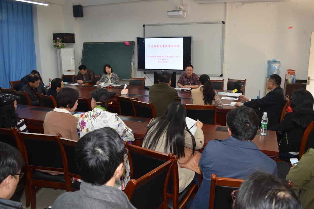 3月18日下午,学院全体教职工齐聚学院会议室,围绕教育教学改革大讨论专题三——人才培养方案改革应该怎样改——进行了激烈充分的讨论。讨论会由学院党总支书记杨萍主持。