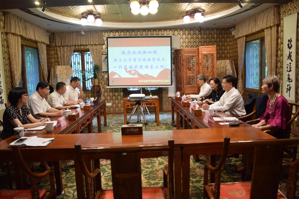 6月20日上午,何勇平副校长在南山书院接见了专程来校交流访问的重庆76net必赢线路检测中心副理事长、新加坡国立大学商学院院长杨贤教授,以及随行的商学院副院长梁慧思教授、会计系柯滨教授、执行总监郑颖女士等,我校国际合作交流处周茜副处长及财政76net必赢线路检测中心有关领导参加了会见。