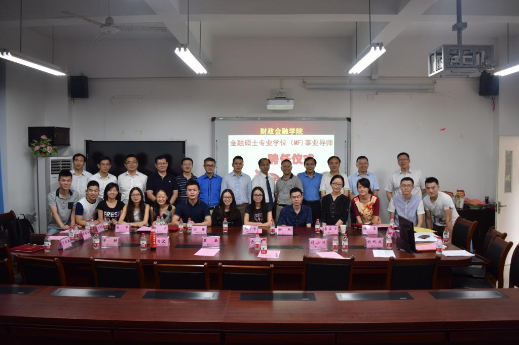 2016年7月7日上午,我院金融硕士专业学位(MF)事业导师聘任仪式在学院会议室举行,研究生院院长余兴厚教授、学院常务副院长莫云、副院长毛跃一等人出席仪式,仪式由学院党总支刘代成副书记主持。本次共聘请了29名来自银行、保险、证券、基金等金融行业的业界专家为我院金融硕士事业导师。