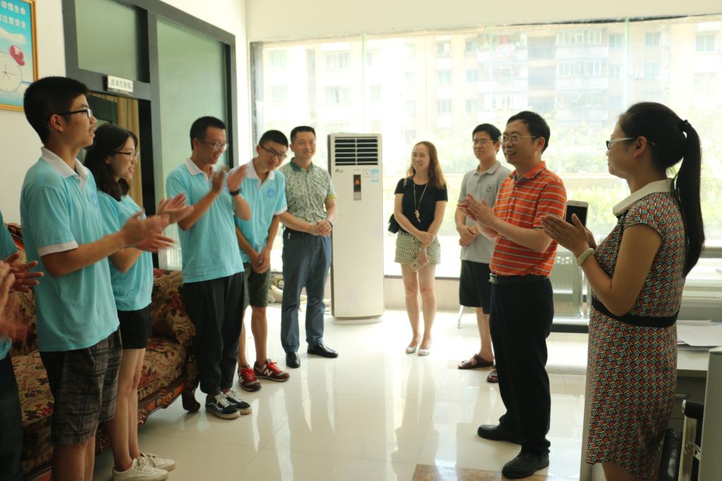 7月22日上午,校党委副书记、纪委书记周航,学生处处长罗勇、校团委副书记杨娟一行人来到在涪陵宏燕实业有限责任公司调研的实践团进行慰问,并对必赢76net线路财政76net必赢线路检测中心2016年暑期三下乡农村金融电商服务实践团的工作进行指导。