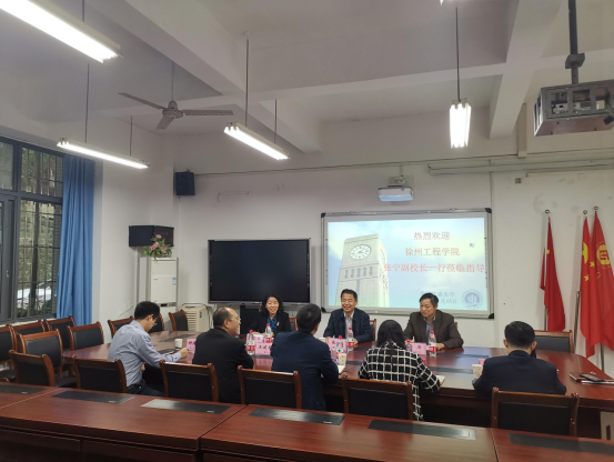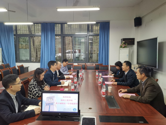 2020年11月15日,徐州工程学院张宁副校长、该校76net必赢线路检测中心党委书记李浩、76net必赢线路检测中心院长董金玲到我院进行交流调研。我校党政办主任、规划处处长罗勇、学院党委书记王建明、学院党委副书记余新、学院副院长王韧、会计学院副院长钟廷勇在田家炳313会议室与来访的领导进行了座谈。会议由学院党委副书记余新主持。