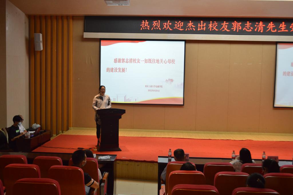 王兰致欢迎辞,对郭志清校友百忙之中参加校庆七十周年系列活动,并与学院师生分享成人、成才、成功的点点滴滴表示热烈欢迎和诚挚感谢。