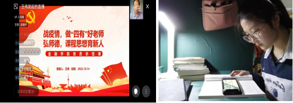 疫情期间,学院教师通过多种方式开展线上教学改革。学院教师积极探索混合式教学,线上灵活采用企业微信直播、雨课堂等形式组织教学,精心设计课程内容,不断提高学生的专注度,线下设置有深度的问题,引导学生深入思考和进一步地学习,线上线下充分融合,极大地激发了学生的学习兴趣。10月11日下午以来,学院共170个教学班次、125门次课程开展线上教学,91人次(教师)线上授课,学生6292人次线上学习,全部结合学校“战疫”的生动实践,播放“战疫”图片、小视频等图文并茂的课程思政内容,春风化雨、铸魂育人。