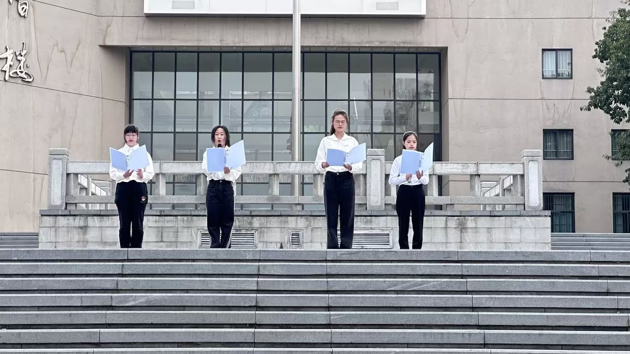 2020级金融工程二班退伍学生杜天宇,结合自己参军历程代表学生做了发言。他谈到,作为新时代栋梁,我们应义不容辞挑起维护国家利益的重担,努力提升自身素养和能力,小我融入大我,为建设强大祖国添砖加瓦!4名学生集体朗诵《心系国家安全 共护万里河山》,他们声情并茂、抑扬顿挫,用激情澎湃的语言细数国家安全成就,感悟新时代青年的责任与使命,号召同学们争当红岩先锋,维护国家安全!
