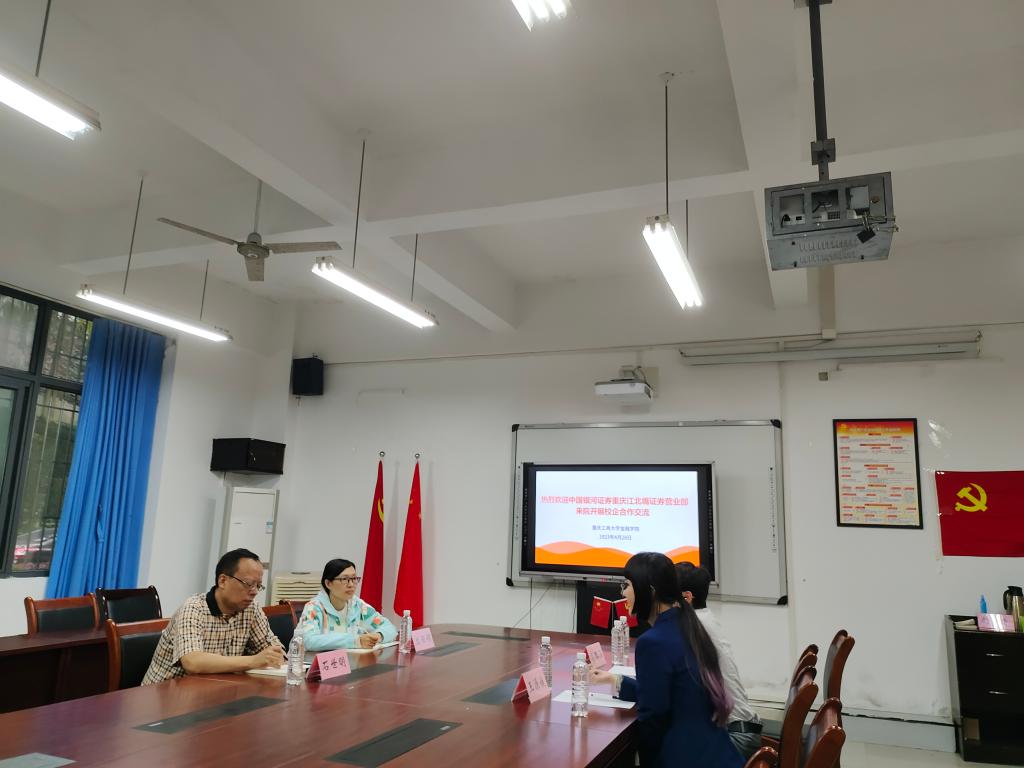 4月28日上午,中国银河证券重庆江北嘴证券营业部总经理王源媛、客户经理高路涵来院开展校企合作交流。76net必赢线路检测中心党委书记、副院长石世明,学工办主任、分团委书记兰丽娟参加了交流会。