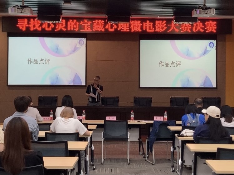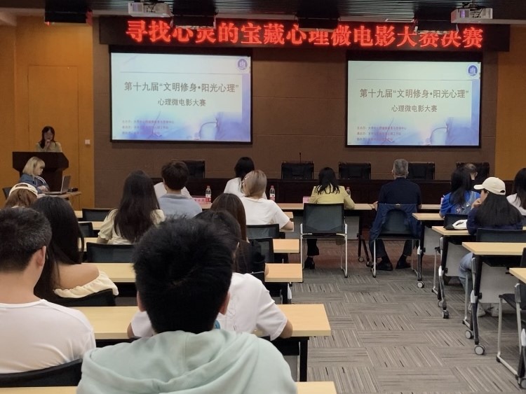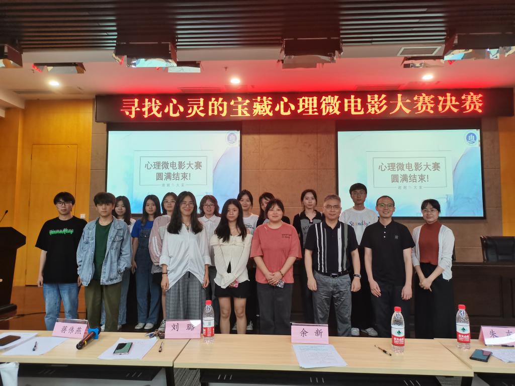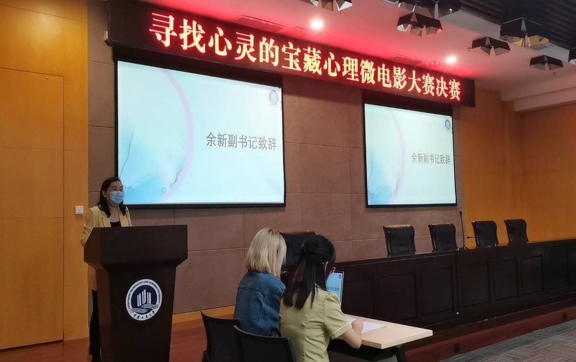 2022年5月19日下午,由必赢76net线路大学生心理健康教育与咨询中心主办,文学与新闻学院,76net必赢线路检测中心联合承办的必赢76net线路第十九届“文明修身·阳光心理”校级“寻找心灵的宝藏”心理微电影大赛总决赛在图书馆多功能厅如期举办。76net必赢线路检测中心党委副书记余新,大学生心理咨询与教育中心刘璐老师,文学与新闻学院朱东教授等嘉宾出席活动。本次比赛同学们积极性高涨,线上线下共计近200名师生参加活动。