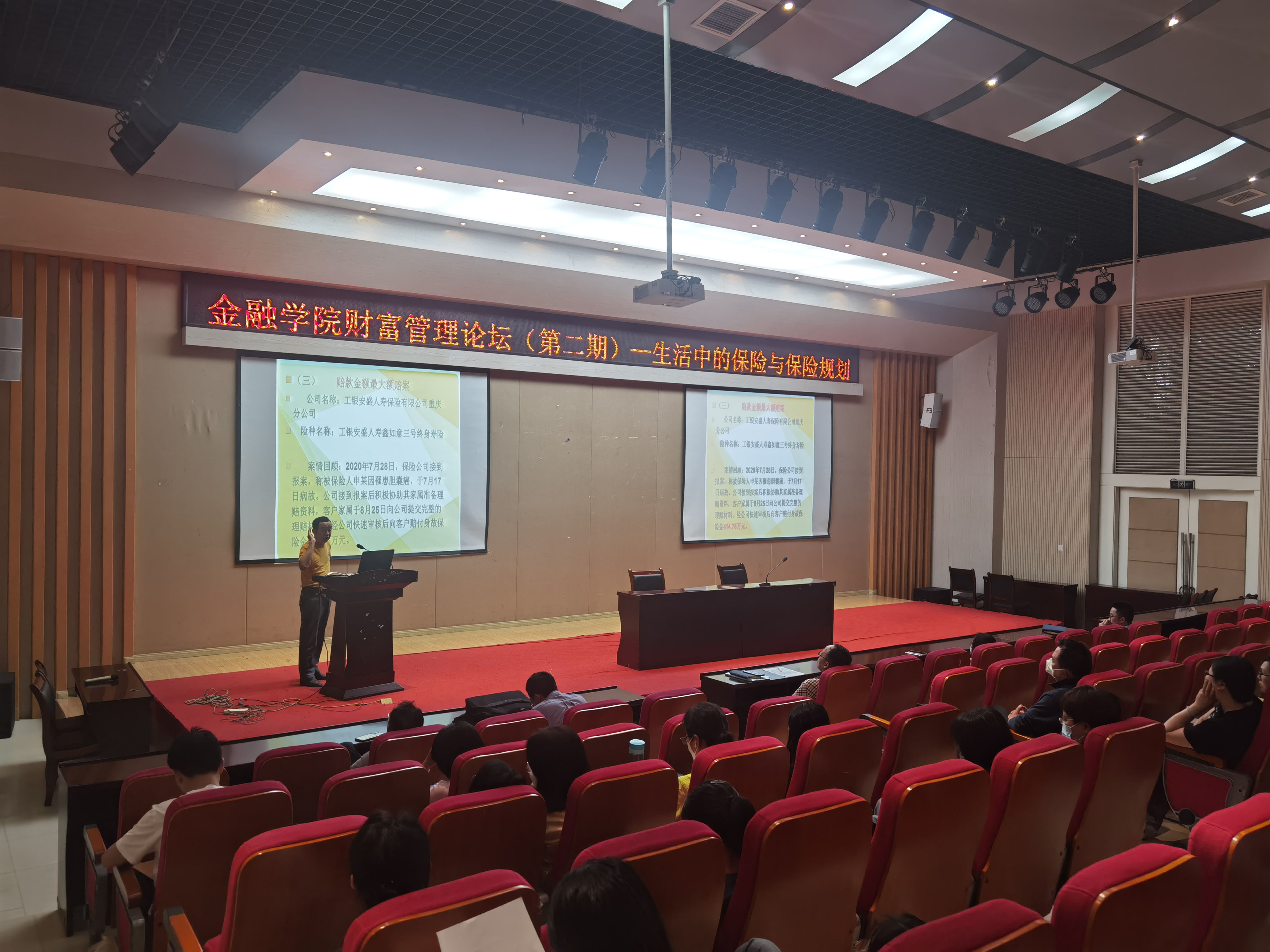 在讲座环节谭湘渝教授首先告诉大家要正确认识保险,他认为:没保险,活着就是冒险;同时帮助大家厘清社会上对保险的一些误解,如:保险是骗人的,保险是“两不赔”,保险就是传销等。谭教授讲到:在人生的不同阶段,由于面临的风险存在差异,其保险需求也不一样,就应该有不同的保险规划。如人到中年(40岁到退休),保险规划应侧重在体现身价和退休后的老年生活费与医疗费上,另一个重点是赋税问题(特别是遗产税问题),可以考虑购买年金类养老保险、两全保险、投资连结保险、万能保险等具有投资理财功能的保险。在互动环节,老师们纷纷提问,有的老师关心渝快保,有的老师关心重大疾病保险,也有的老师关心车险……,谭教授针对老师们关心的车险、渝快保、重大疾病与百万医疗、个人养老金等保险热点问题进行一一解答和说明;在互动环节还进行了知识抢答,学院工会针对财富管理论坛第一期和第二期讲座的内容准备了10个抢答题,老师们踊跃作答,将论坛推向高潮。