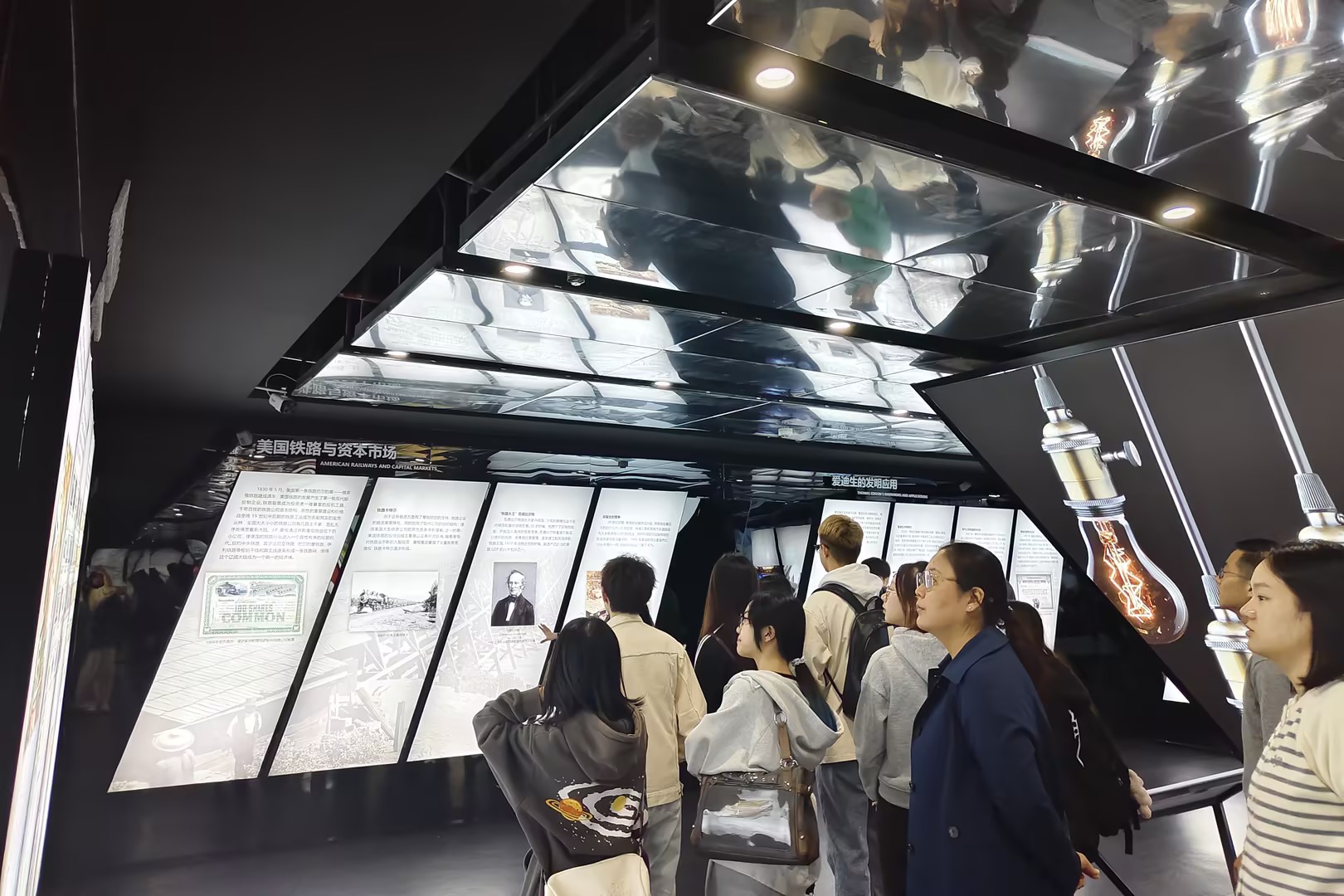 同时,为了增添参观学习的趣味性,此次活动添加了许多互动环节。例如在参观金融的力量时,讲解员先是带领同学们参观由博物馆1:1还原的古代账房先生工作时的场景,再让同学们亲自上手感受了一百万纸币以及金条的重量,最后带领同学们了解了金融与艺术、金融与科技的结合以及模拟市场,让金融的“力量”更直观形象地展现出来。