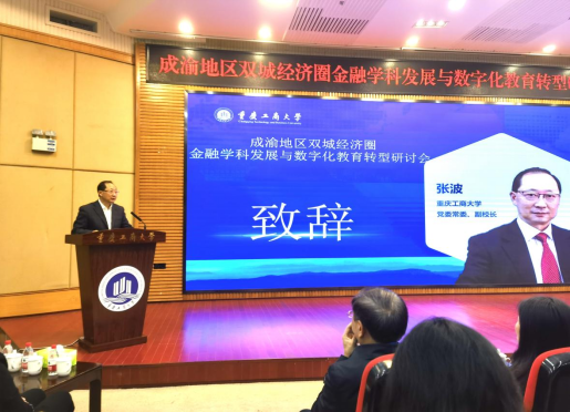 重庆大学社会科学部副主任、重庆市高等学校经济学类专业教学指导委员会主任委员姚树洁教授以《双循环与成渝地区双城经济圈高质量发展:基于科技创新视角》为题演讲,从新阶段国内外政治经济形势、“双循环”新发展格局与科技创新等方面阐释经济学类教育数字化转型的意义和实施路径。