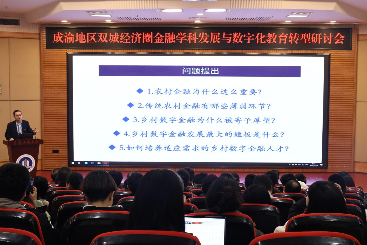 必赢76net线路校长温涛教授以《乡村数字金融成长与人才培养改革创新》为题演讲。他以农村金融的重要性为切入点,从微观机制难以有效对接现代农业发展需求、体系不均衡导致服务产业发展的功能不健全、唯抵押担保格局未破解导致融资规模难以提升、内生机制弱化导致合作金融信息优势难以有效发挥、统筹施策不力导致金融监管空白和风险隐患等五个层面,深入分析传统农村金融存在的薄弱环节。他提出,借助数字技术应运而生的数字金融模式是化解传统农村金融诸多难点与痛点的可行性方案。同时,他指出,现有乡村数字金融发展最大的短板是“数字鸿沟”导致乡村数字金融产品服务接受度不高、人才短缺导致乡村数字金融产品及风控技术研发不足。他强调,为了有效化解培养适应需求的乡村数字金融人才匮乏问题,高校要以教育评价改革牵引人才培养改革,加快“计算机类+金融保险类+农业农林管理类”学科专业融合发展。以西部金融中心建设和重庆数字金融发展为契机,大力培养乡村数字金融人才,为全面推进乡村振兴、加快农业强国建设的关键核心领域优先填补人才缺口。