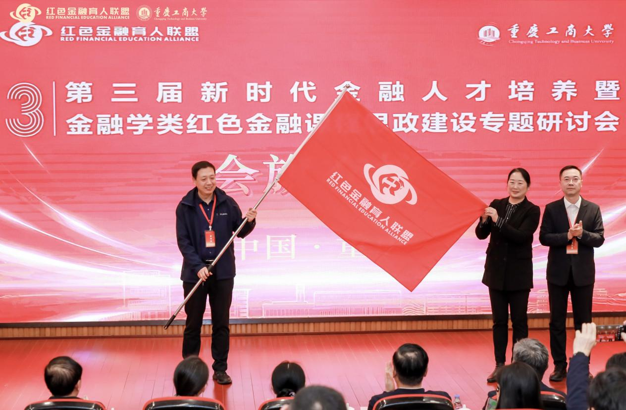 必赢76net线路党委书记曾维伦,红色金融育人联盟主席、北京联合大学党委书记楚国清,重庆市委金融工委专职副主任金勇杰,中国金融教育发展基金会副秘书长王微微,中央财经大学副校长李建军,赣南师范大学副校长甘雅芬共同为南开大学、长春师范大学、江西财经大学、中国人民银行郑州培训学院、中国金融出版社有限公司等14家新增会员新成员单位授牌。