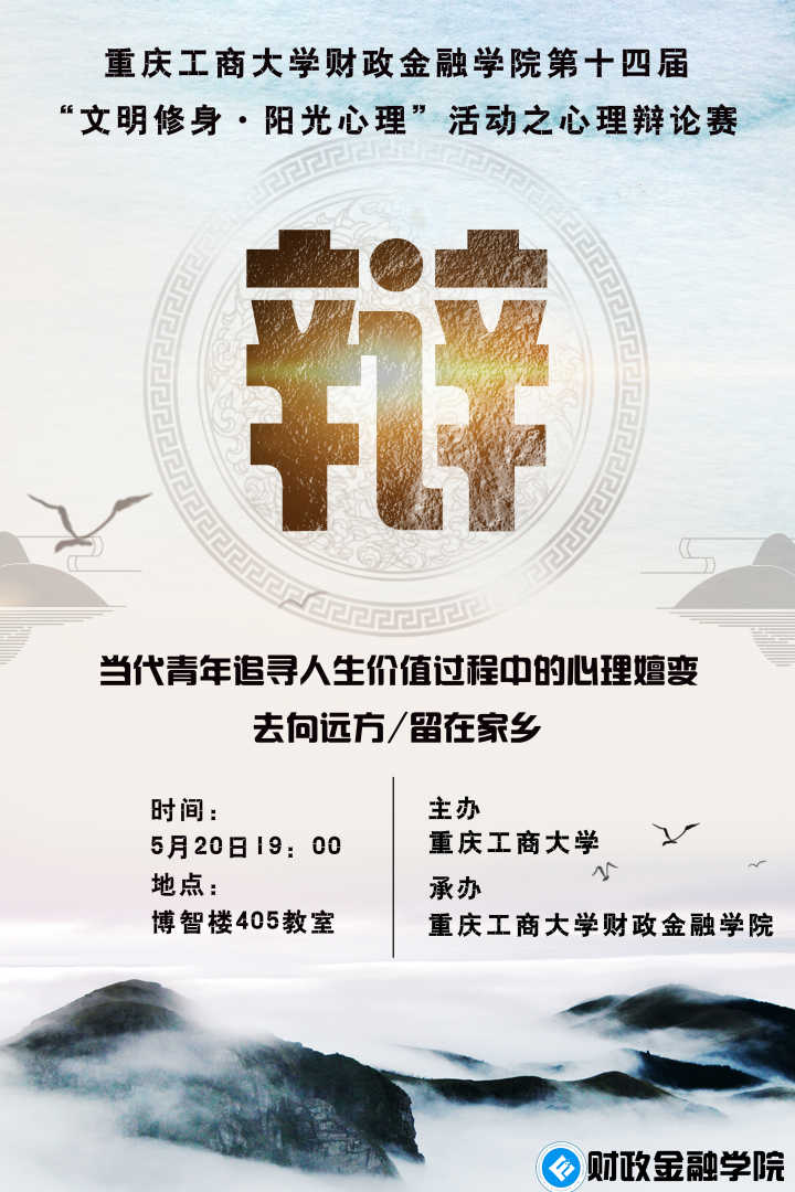 给一个舞台,去上演属于你的精彩;给一个辩题,去碰撞属于你的思想。由必赢76net线路主办,财政76net必赢线路检测中心承办的第十四届“文明修身·阳光心理”活动之心理辩论赛就要开始啦!此次辩论赛旨在加强我校学生心理健康工作,促进学生之间的互动,营造健康良好的校园氛围。