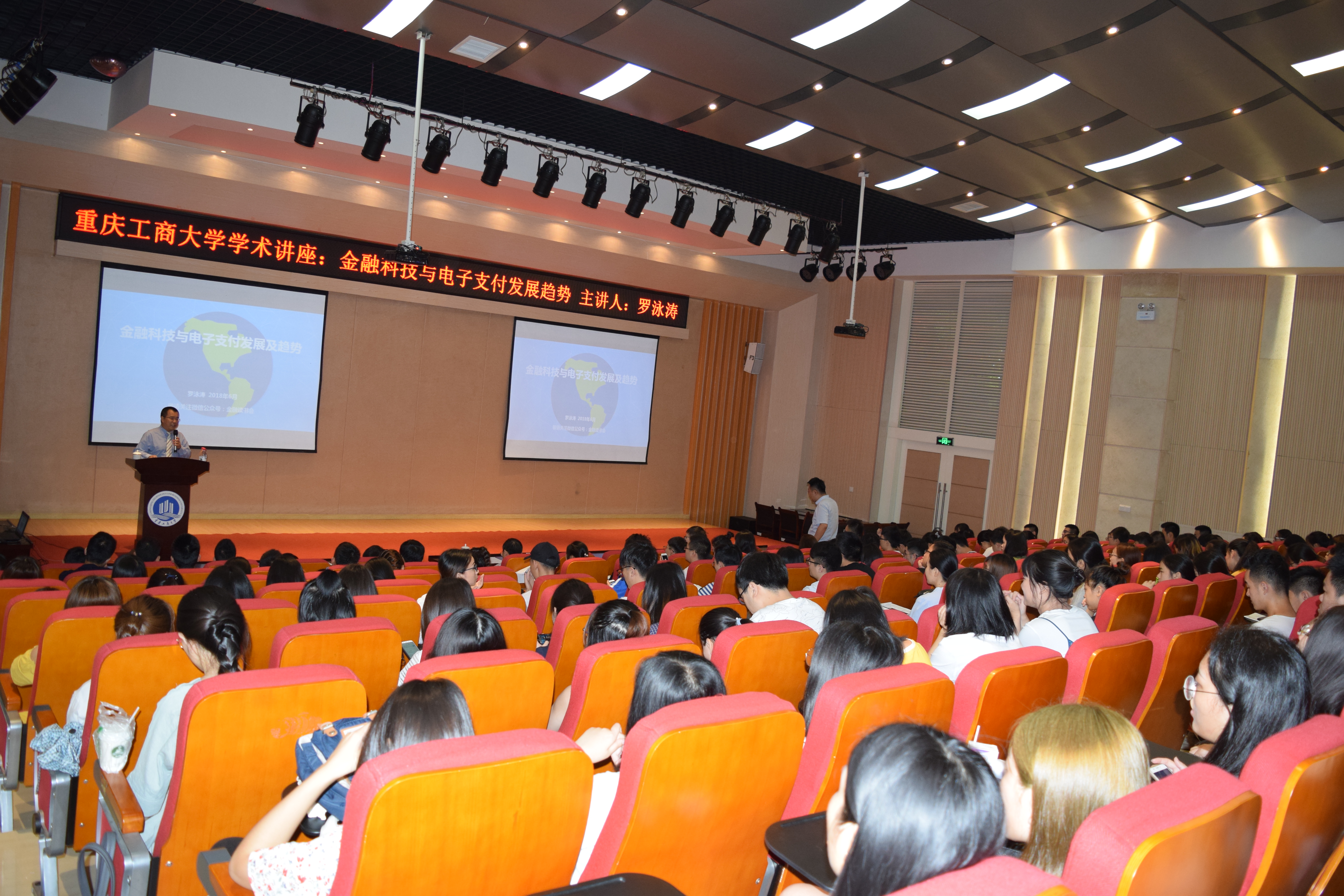 为提高我院金融学生专业知识水平,增强学生理论与实际相结合能力,6月12日上午10点,中国银联股份有限公司重庆分公司总经理罗泳涛应我校财政76net必赢线路检测中心邀请,在田家炳50209报告厅就“金融科技与电子支付发展趋势”开展了专题讲座。讲座由财政76net必赢线路检测中心院长刁孝华教授主持,财政76net必赢线路检测中心的本科生和研究生共同参加。