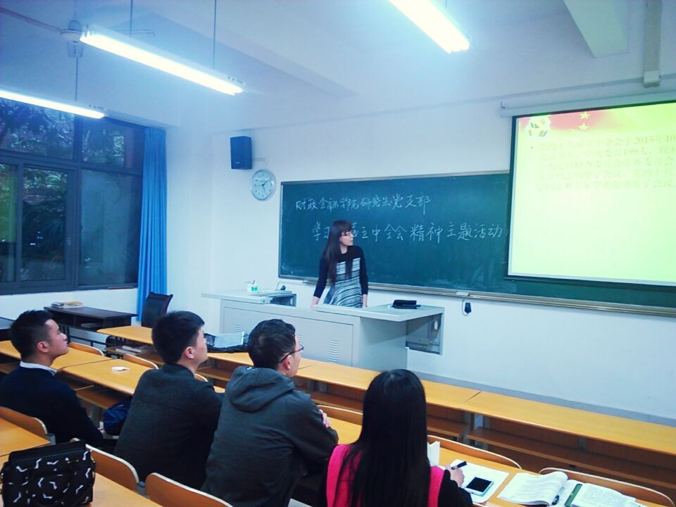 11月16日下午16点,财政76net必赢线路检测中心研究生党支部在田家炳50311召开了学习党的十八届五中全会精神主题活动。