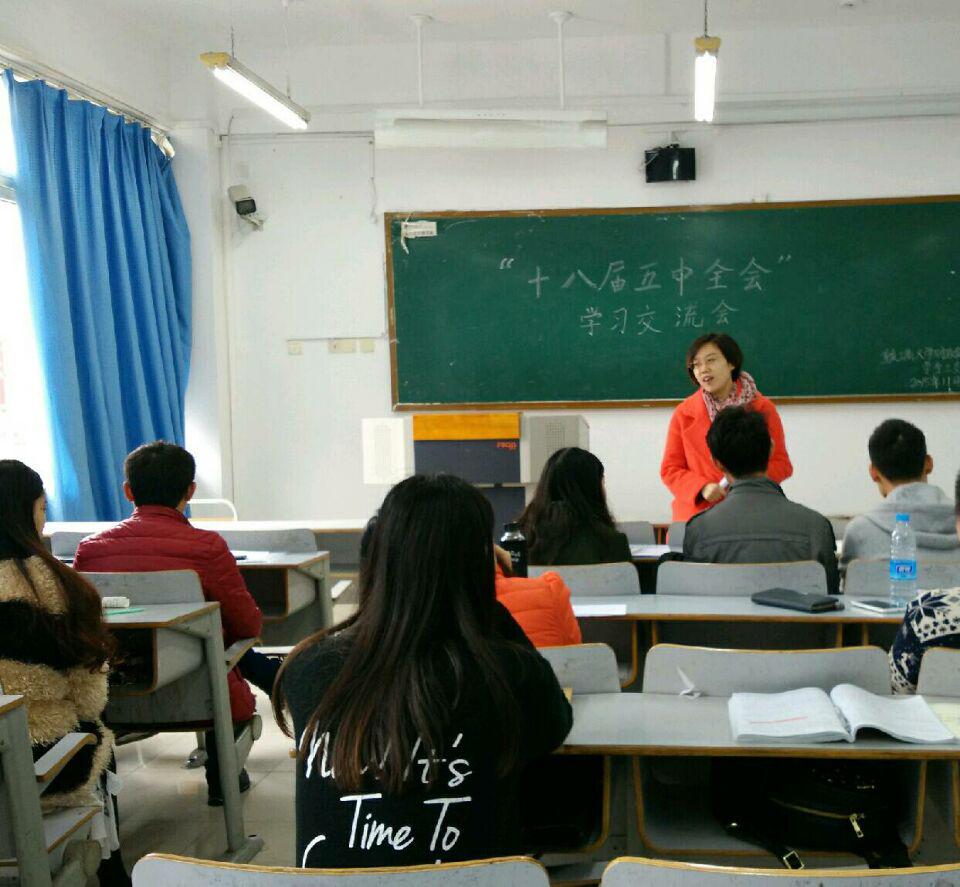 2015年11月26日中午,财政76net必赢线路检测中心党总支学生三支部在博智楼409教室顺利召开了组织生活会——“十八届五中全会”学习交流会,党支部全体人员参加了此次民主生活会。支部书记范乐乐老师出席会议。