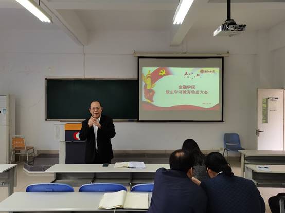 3月19日下午,我院在南岸校区田家炳406教室厅,召开党史学习教育动员大会, 就深入学习贯彻习近平总书记在党史学习教育动员大会重要讲话精神,落实中央、市委和学校党委统一要求,在全院党史学习教育工作进行动员和部署。全体教职工参加了会议。会议由学院党委书记王建明同志主持。