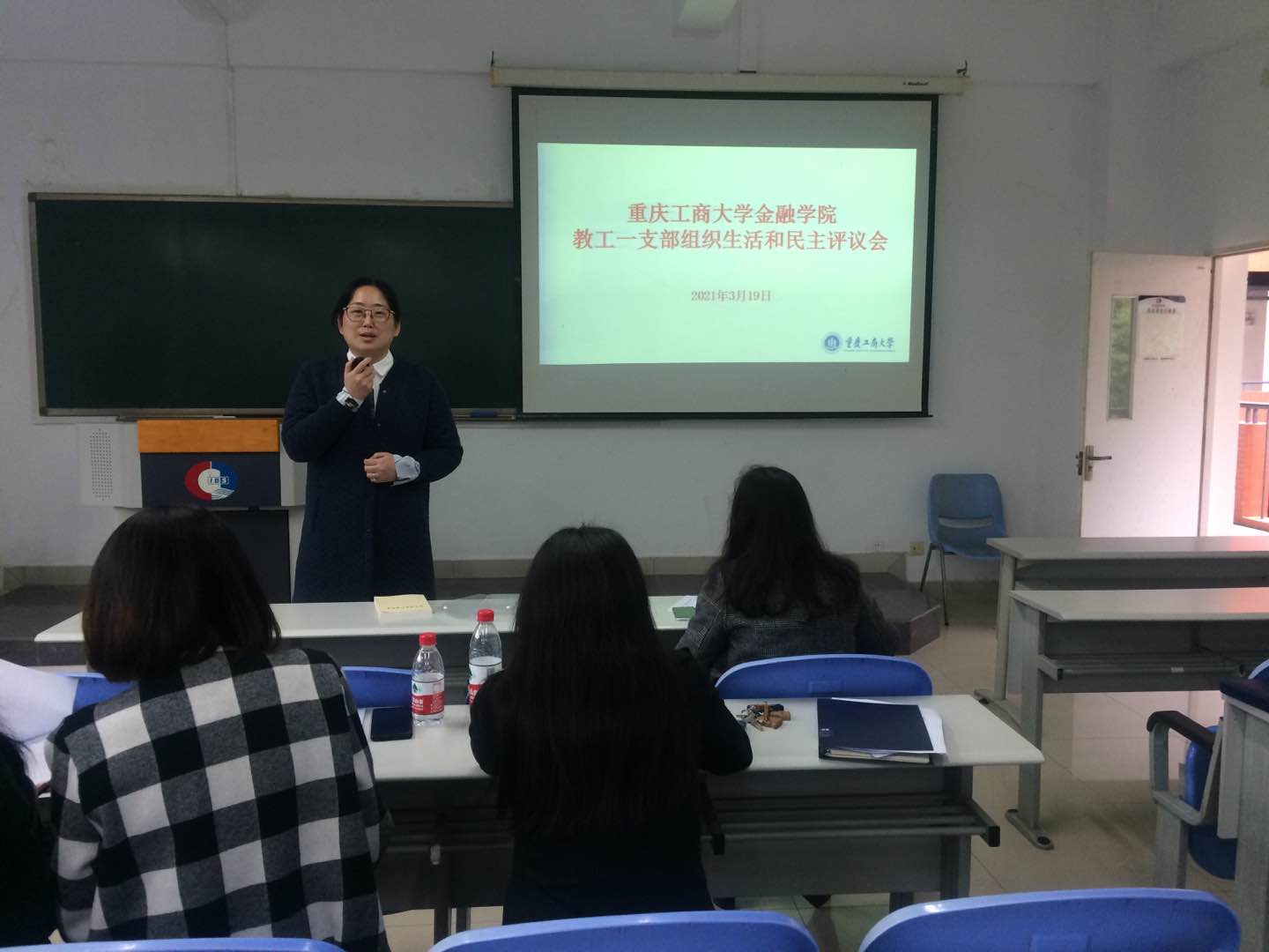 随后,黎毅书记就2020年度支部整体工作和2021年工作思路进行了汇报,指出在过去一年,虽然受新冠疫情影响,教工第一支部深入贯彻“三会一课”制度,积极通过企业微信平台开展党员活动,圆满完成了2020年党支部工作计划安排。未来还需要在结合实际工作,拓展主题党日的活动形式和建立健全支部组织生活制度等方面加强支部建设。支部组织委员谭会敏、统战委员赵甫刚和纪检委员李鑫分别对2020年度自己所承担的支部工作进行汇报。