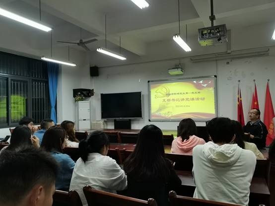 首先由杨宁老师讲授题为《中国共产党为什么能》的党史教育专题党课。杨老师结合自身经历和党的奋斗历程,从党的“科学的理论指导”、“坚定的理想信念”、“强大的组织优势”、“坚实的群众基础”、“彻底的自我革命”五个角度深入阐释了中国共产党为什么能带领中华民族实现从站起来到富起来再到强起来这样一个又一个伟大的历史飞跃,让全体与会同志深切感受到了党的光荣和伟大,坚定了自身作为一名入党积极分子和学生党员的使命感和责任感。