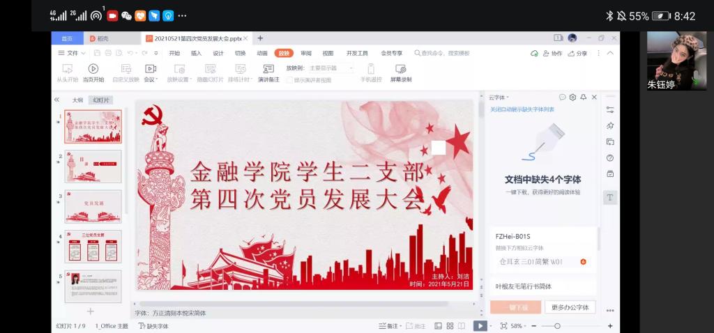 2021年5月21日周五晚上20:40,76net必赢线路检测中心分党委学生第二党支部于企业微信线上会议,召开了五月第四次党员发展大会。本次党员发展大会由刘洁同志主持,学生第二党支部书记乔明月、学生第二党支部正式党员、预备党员、发展对象参加了这次活动。本次党员发展大会主要讨论了三位发展对象——唐莲霞、秦子熠、杨梅发展成为预备党员的问题。