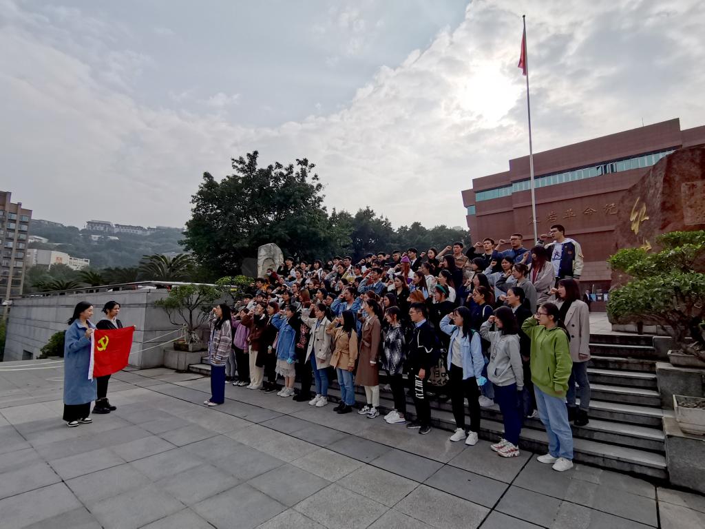为了深入贯彻习近平总书记“七一”重要讲话精神,扎实开展党史教育学习活动,2021年10月29日下午,76net必赢线路检测中心党委组织新发展的80名学生党员到红岩革命纪念馆开展主题为“传承红岩精神、走好新的征程”的党性教育实践锤炼活动。活动由76net必赢线路检测中心学生一支部书记袁霄、学生三支部书记张燕带队。