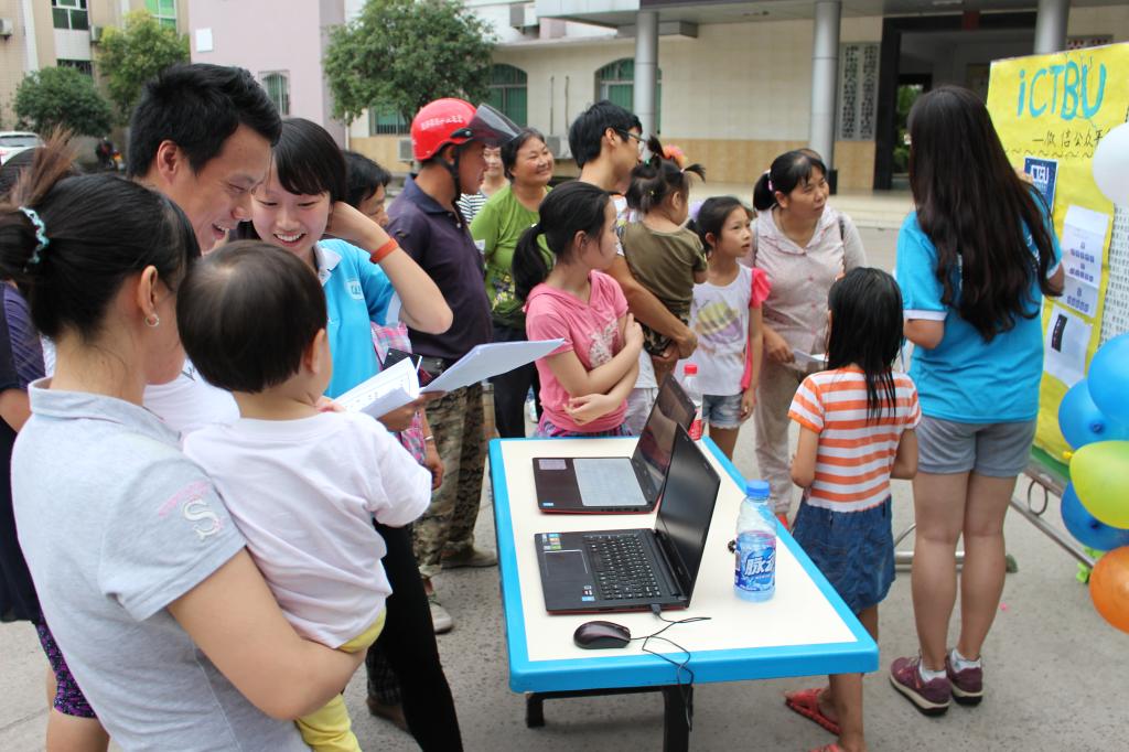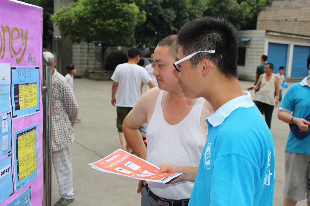 此次展示的作品涵盖了从必赢76net线路投资管理决策大赛中脱颖而出的创业项目和重庆创业家协会的项目。面对“ictbu”、“ imoney”、“快收”、“开普敦计划”、“诚客兼职”这些新颖的作品,当地民众聚集在各式展板前驻足观看。精心制作的视频、简明的海报以及服务团成员接地气的讲解,揭开了大学生创业项目在基层民众的神秘面纱。其中,极具便利性和环保性的“快收”,博得了在场民众的认可。“你们大学生很有想法,这台机器什么时候能到我们龙桥呢?”另外,“微商”“二手市场”等话题引起了在场民众的共鸣和热烈讨论。不少小朋友对这些新奇的事物产生了浓厚的兴趣,尽管他们对创新创业还缺乏足够的认识,但强烈的好奇心驱使他们凑到展板前,提出各种天马行空的问题,而这些问题正是小朋友们创新思维的萌芽。