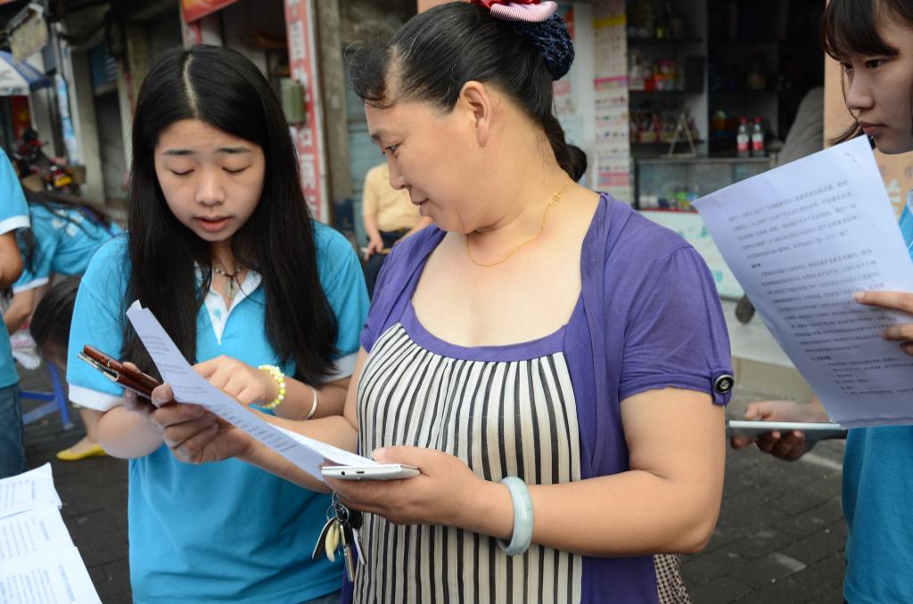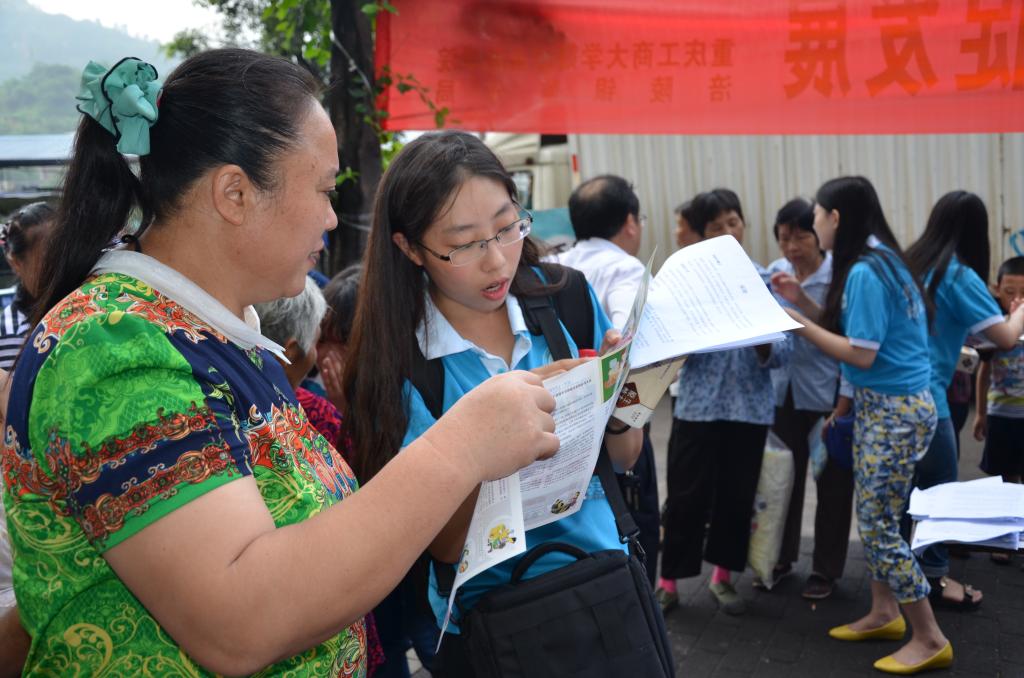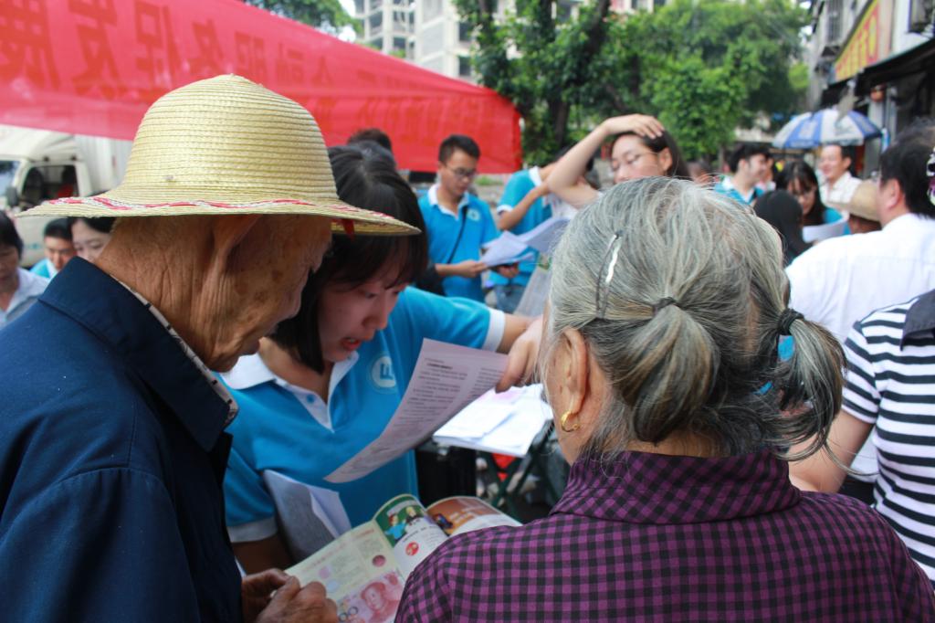 宣讲会紧扣基层群众金融需求,提供多层次的咨询服务。在宣讲过程中,各个年龄层对金融知识的关注点各不相同,20-30岁的返乡青年对农业创业方面的政策扶持和融资平台尤为关注;30-50岁的中年人则更加关心商业保险产品的种类和投保途径;50岁以上的老年人对金融诈骗知识相对匮乏。面对这些问题,服务团成员和重庆农村商业银行龙桥分理处工作人员运用专业知识,配合手机银行、支付宝等手机理财软件进行演示,一一为其答疑解惑。为有创业意愿的人普及如众筹、第三方支付等新兴金融工具相关知识,让更多更全面的商业保险种类进入到中年人的视野,同时也用钞票现场展示“一看,二模,三听”的假币识别方法。