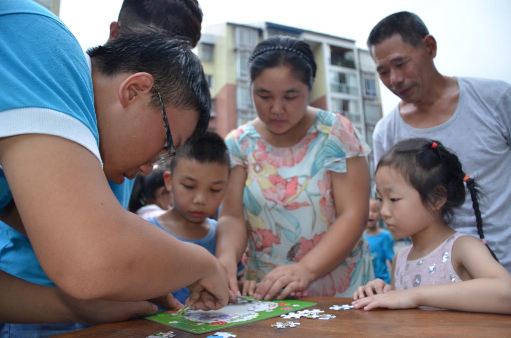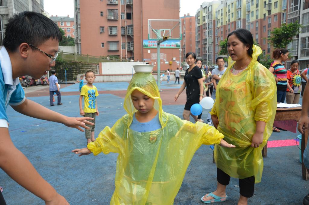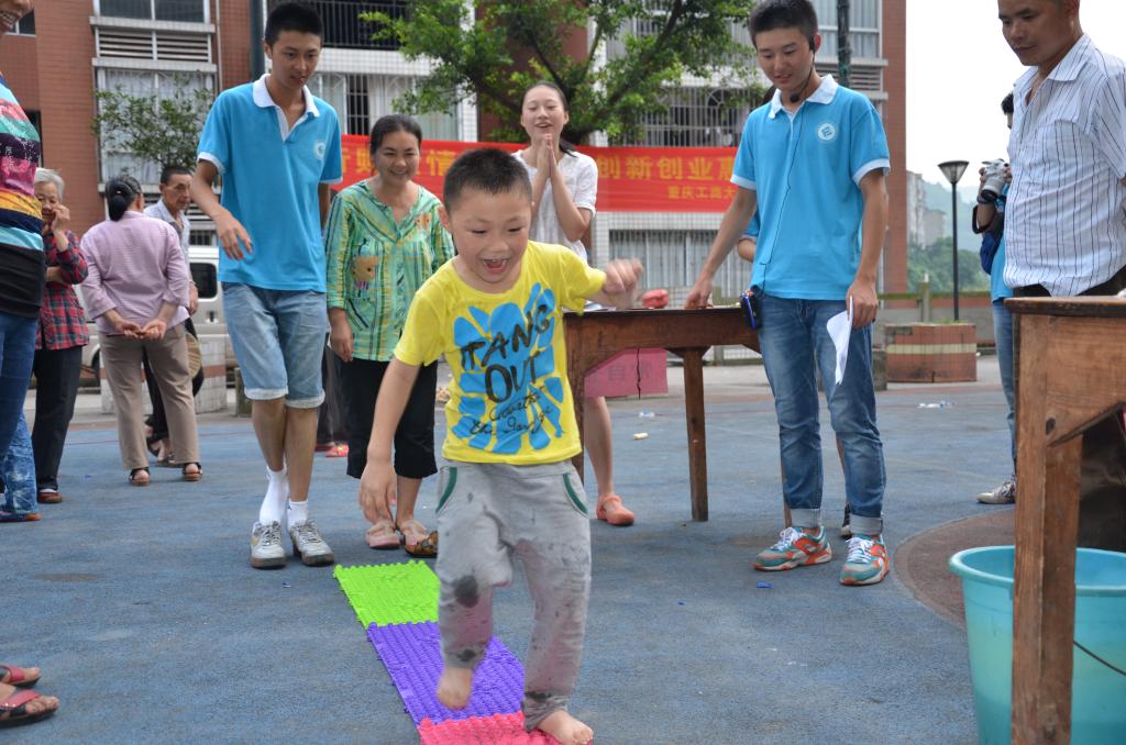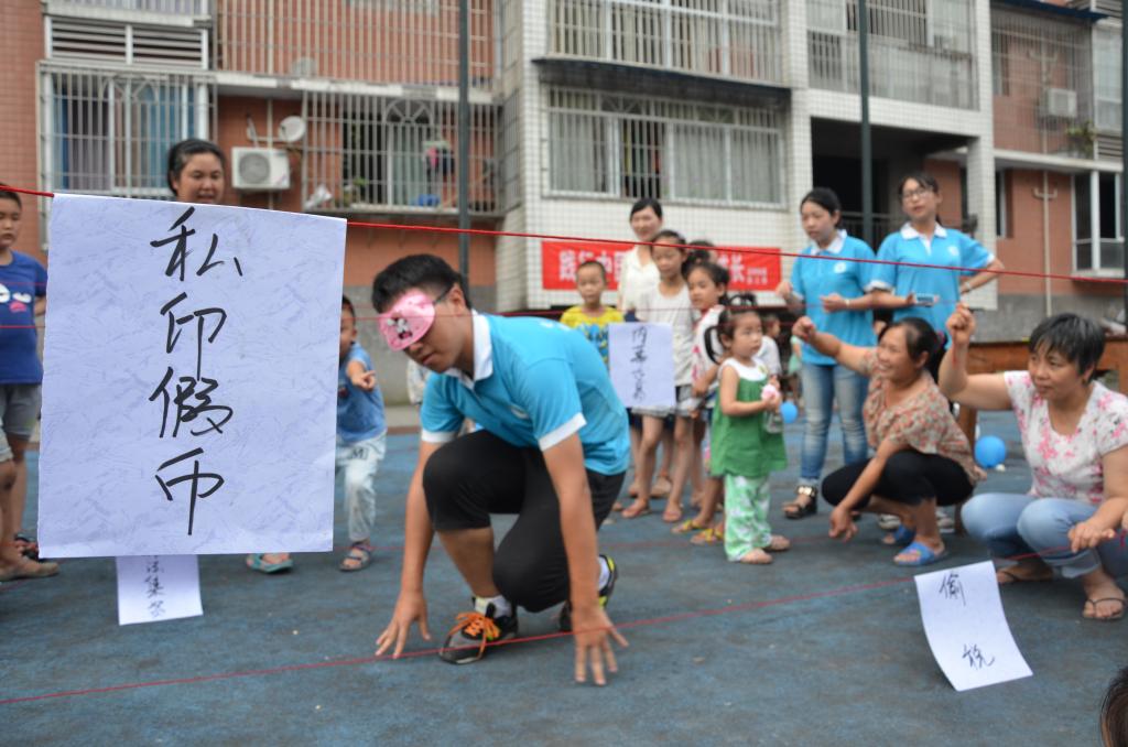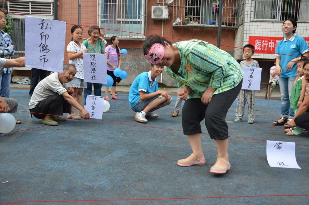 特色游戏吸引了社区居民的热情参与。小朋友与其家长组成亲子队,在服务团成员的带领下进行闯关。从挂有“私印假币”、“非法集资”、“偷税”纸片的红线阵中成功穿越的“越火线,怀初心”环节,虽说蹲下、跨越,动作简单,却诠释着守法的必要性,警示民众在创业活动中要恪守道德底线,切勿触碰法律红线。“行得端,刚不阿”,则要求选手头顶水碗跨过障碍,保证水不溢出。谨小慎微的参赛者正如在经济活动中严谨行事的“君子”,影射了经济活动参与者要行得端,走得正,切莫走上违法犯罪的歧途。而“查陋病,常自省”、“触经济,辨真伪”及“善组合,谱华章”等环节,则在传授经济小技能的过程中让社区居民体味遵纪守法的不可或缺。在欢声笑语的轻松氛围中,踩着落日余晖,严谨的经济法纪在居民心中打下深深的烙印。