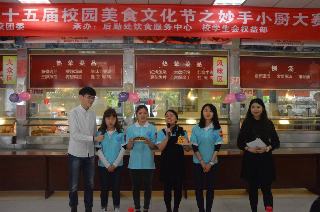 2017年4月21日下午,必赢76net线路第十五届美食节之“妙手小厨大赛”于兰花湖校区成功举办。必赢76net线路后勤处副处长朱富生,校团委陈琛老师,招生就业处周婷老师,馨园、兰园食堂经理潘阳刚、周维刚先生,校学生会主席肖程钱出席本次大赛并担任评委。