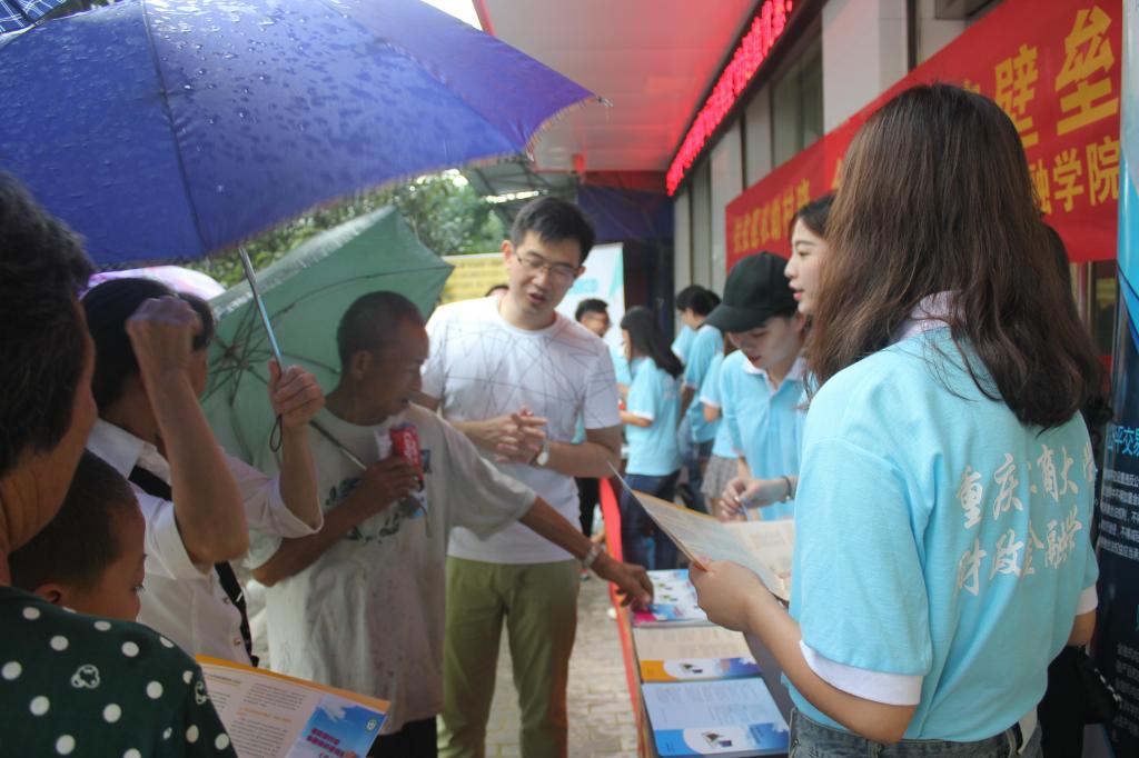 宣传台前,除了宣讲和调研,调研团成员还积极为我们的村民答疑解惑。