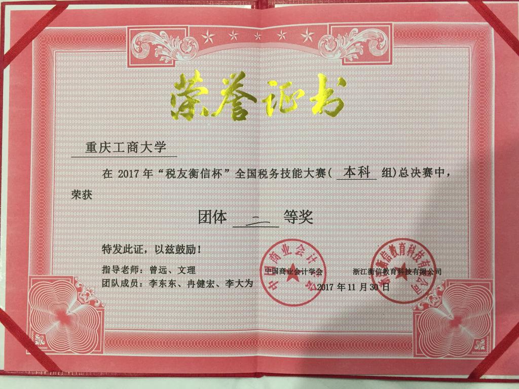 2017年11月28日下午,财金学院学生李东东、李大为、冉健宏代表我校前往杭州参加2017年“衡信杯”全国税务技能大赛总决赛。