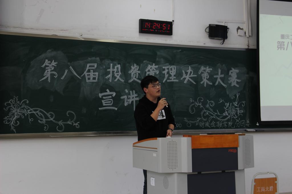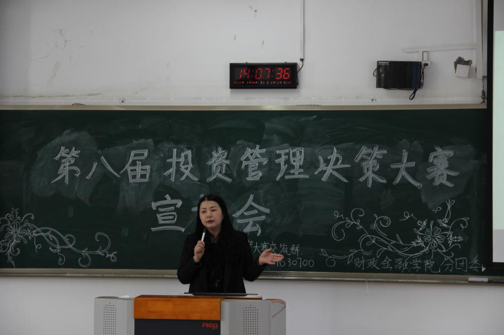 为响应“大众创业,万众创新”的号召,财政76net必赢线路检测中心以校团委“第十六届‘新儒商’大学生科技文化节”活动为依托,于2018年3月16日下午两点在博智楼308成功举办了第八届投资管理决策大赛宣讲会。本次宣讲会邀请到了投资系老师陈晓莉老师、财政76net必赢线路检测中心分团委书记徐阔老师以及财政学专业陈羲羲学长为同学们指导。