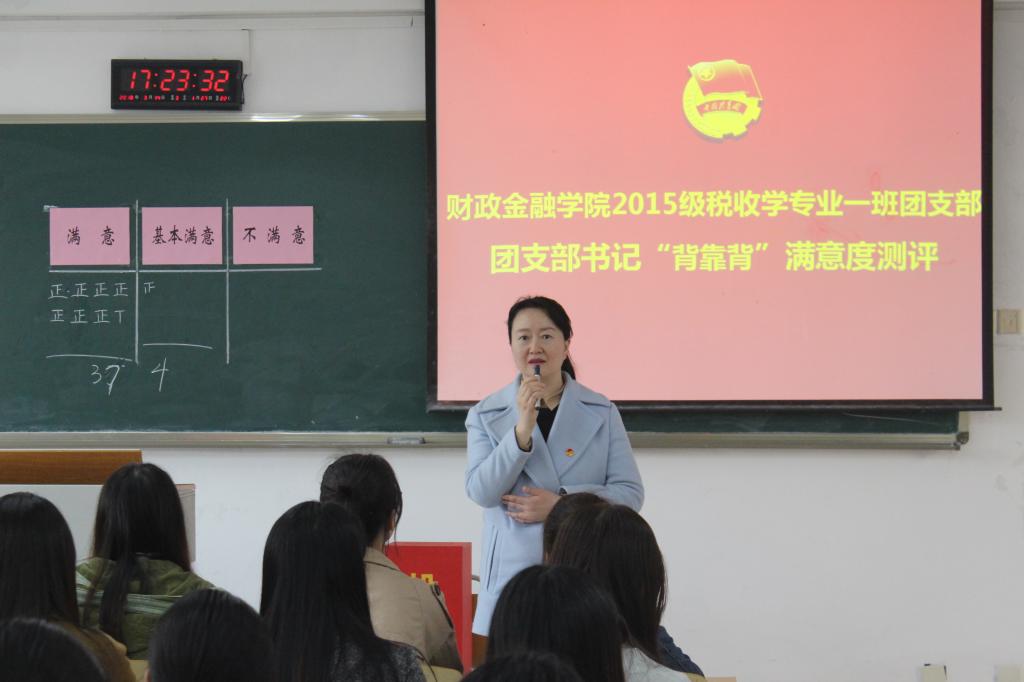 为夯实基层团支部群众基础,做好团支部建设工作,3月14日下午,必赢76net线路财政76net必赢线路检测中心税收学专业2015级一班团支部在70202教室开展了对团支书刘菊同学的“背靠背”满意度现场集中测评。团市委高校工作部副部长、调研员李霞、校团委杨娟副书记、校团委陈琛老师到场观摩了此次测评。