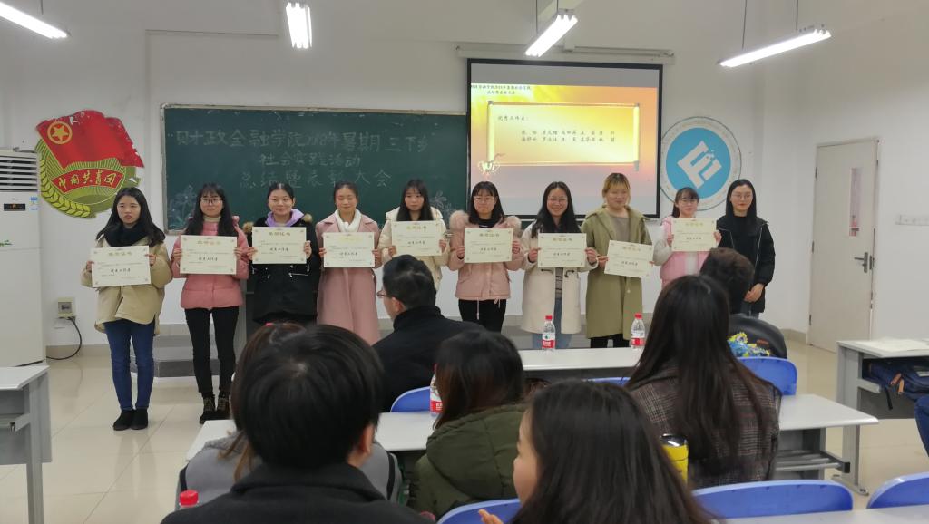 2018年12月14日下午四时,财政76net必赢线路检测中心2018年暑期“三下乡”社会实践活动总结暨表彰大会在田家炳书院306教室顺利举行。此次活动旨在总结2018年财金学院暑期社会实践的工作,表彰先进,树立典型。财政76net必赢线路检测中心分团委书记徐阔老师及各实践分队成员、学生代表共计80余人参加了本次活动。