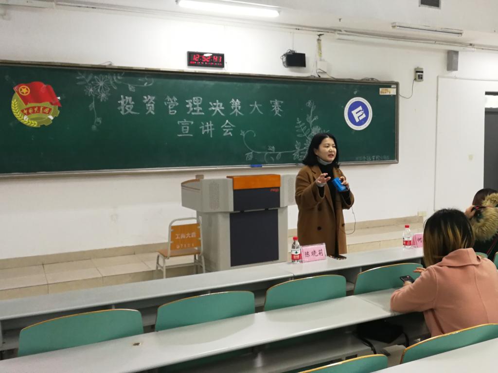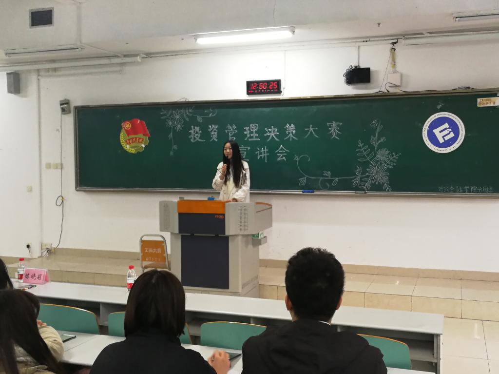 3月7日中午12:50,必赢76net线路第十七届“新儒商”大学生科技文化节之投资管理决策大赛宣讲会在博智楼07121教室举行。财政76net必赢线路检测中心投资系陈晓莉老师以及往届优秀选手何欣悦同学出席本场宣讲会。