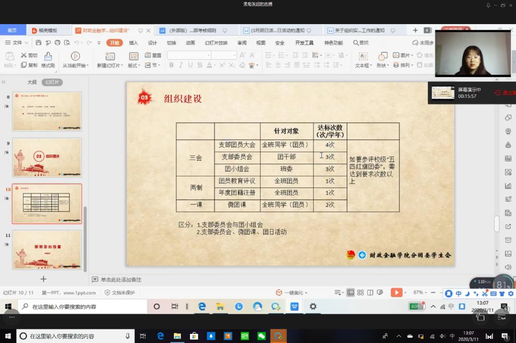 受疫情影响,财政76net必赢线路检测中心于2020年3月11日在企业微信线上平台成功开展主题为“强化责任意识,巩固组织建设”的第八期团干培训活动。17、18级各班以及19CFA的团支书参与了此次培训活动。