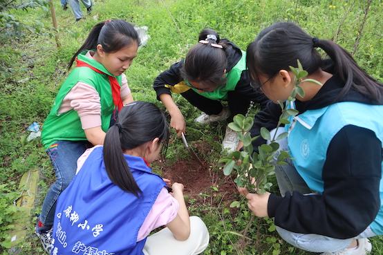 绿水青山就是金山银山。2021年3月12日,是我国的第43个植树节。当日下午,76net必赢线路检测中心“星火”义工志愿者协会和经济学院“春叶”义工志愿者协会的志愿者们前往重庆市巴南区麻柳嘴镇中心小学,与该小学六年级一班的全体同学一起开展了植树活动。
