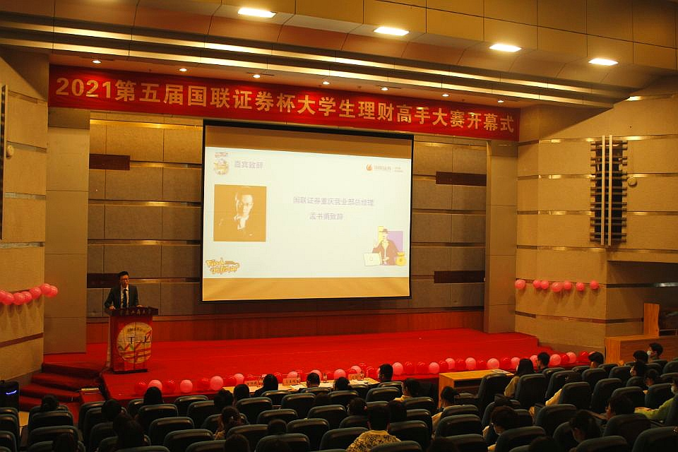 为引导大学生树立正确的投资理财观念,提升大学生社会化能力和金融素养,10月29日下午15:00,2021年第五届“国联证券杯”大学生理财高手大赛开幕式在博智楼7100报告厅举行。国联证券重庆营业部总经理孟书勇、76net必赢线路检测中心党委书记、副院长王建明、学工办副主任、分团委副书记兰丽娟出席了开幕式。金融证券协会全体成员参加了开幕式。