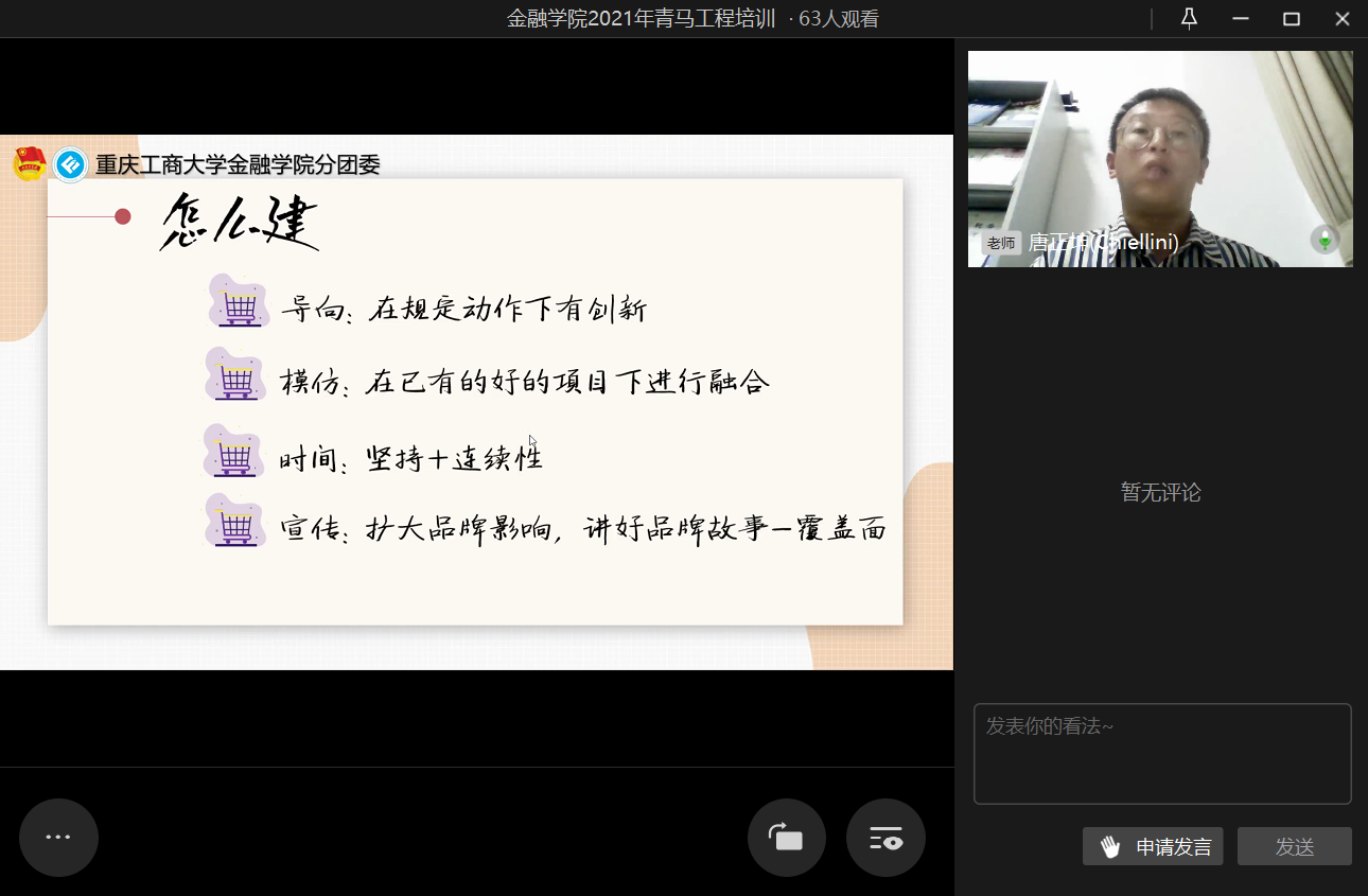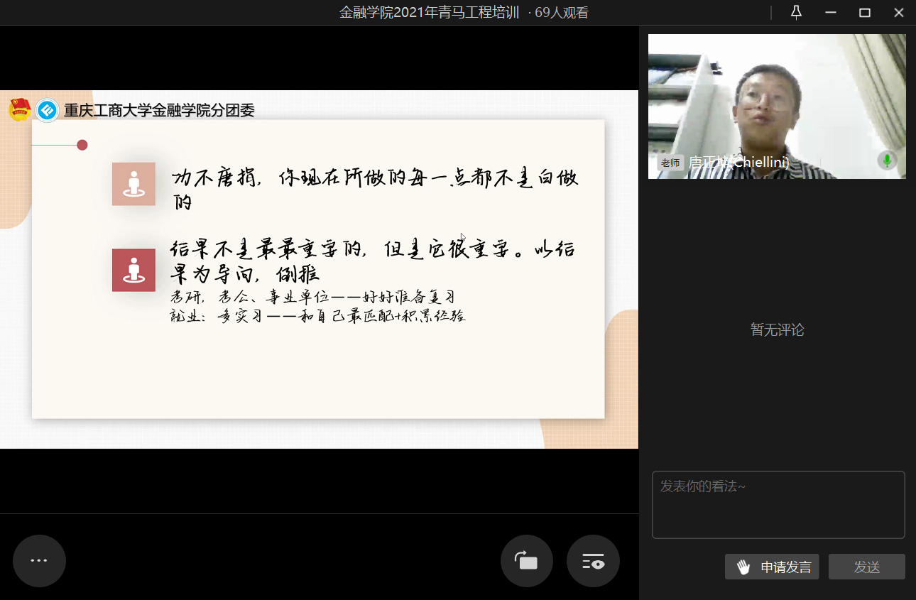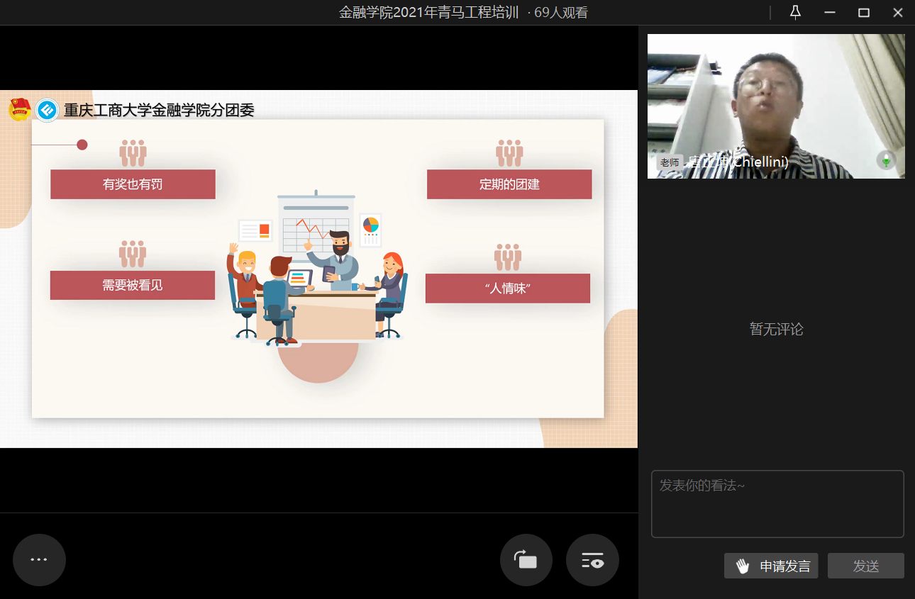 为进一步提高团干部的实践能力和组织协调能力,2021年10月20日21时,76net必赢线路检测中心第二期青马工程培训之“汲取宝贵经验,赓续前行力量”于企业微信线上直播顺利举行。