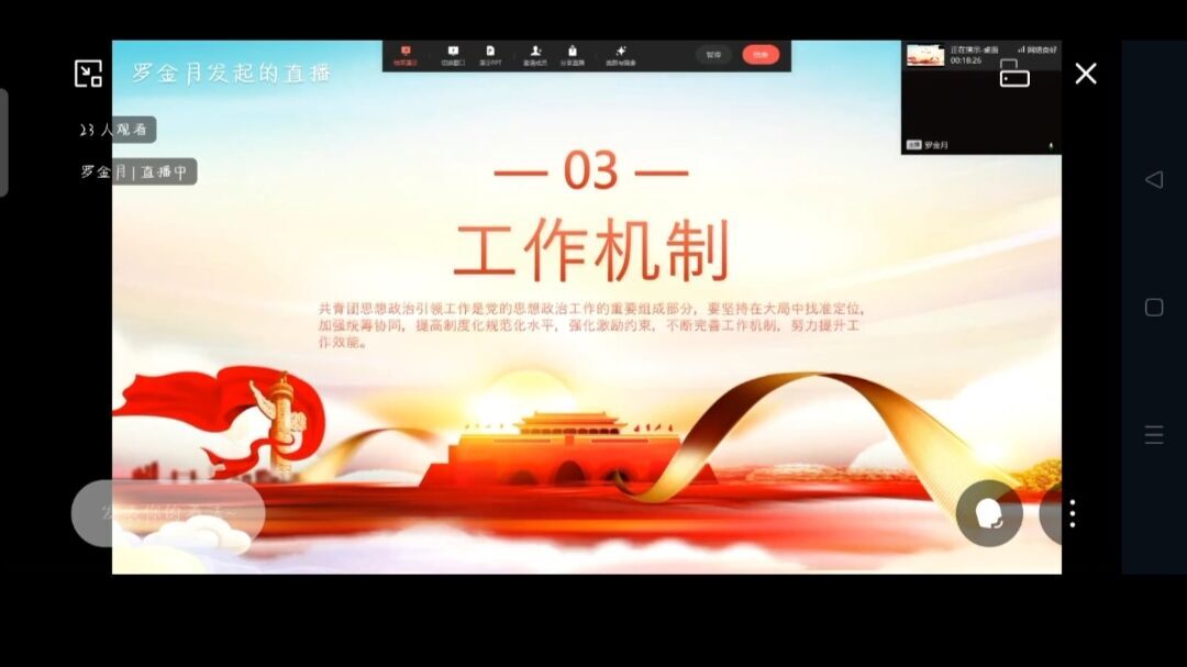 活动在庆祝中国共青团成立100周年主题宣传片《共青春》主题曲《有我》的青春问答中拉开,同学们在细腻而又气势磅礴的旋律中感受一代代不负时代重托的中国青年模样。随后,76net必赢线路检测中心分团委组织部部门负责人罗金月领学,内容涵盖团中央发布的《新时代加强和改进共青团思想政治引领工作实施纲要》及习近平总书记在中国人民大学考察时的重要讲话精神。她对《新时代加强和改进共青团思想政治引领工作实施纲要》中主要项目、基本方法、工作机制的具体规定进行详细讲解,在讲到开展劳动教育板块,号召同学们以五月“劳动月”为契机,积极投入到志愿服务、专业实践、社会调研等活动,把养成劳动习惯、强化劳动情感、掌握劳动技能结合起来,传播“崇尚劳动、热爱劳动、辛勤劳动”的道德风尚。在分享习近平总书记在中国人民大学考察时的重要讲话精神时,同学们纷纷表示备受鼓舞,深受感染,将牢记嘱托,“不负韶华,不负时代,不负人民,在青春的赛道上奋力奔跑,争取跑出当代青年的最好成绩”!