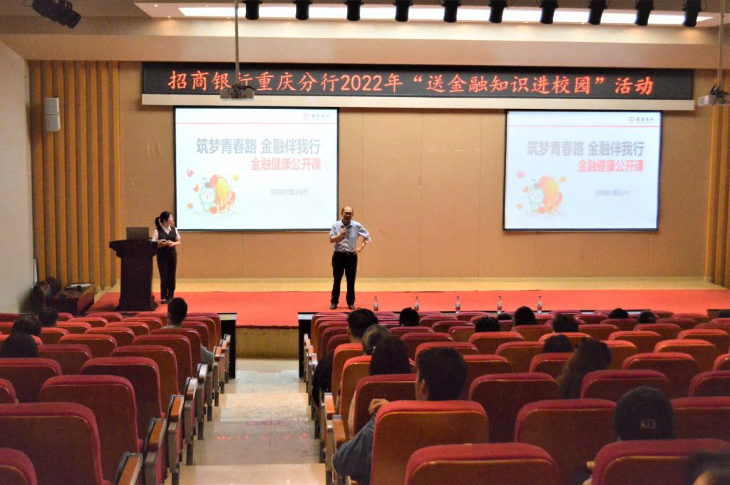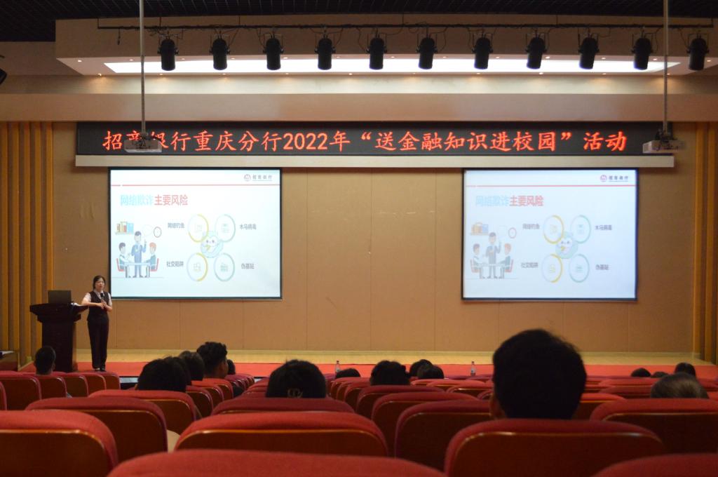 为普及金融知识,提升大学生金融风险防范意识和金融安全意识,2022年6月17日上午10:30,76net必赢线路检测中心携手招商银行重庆分行在田家炳209报告厅开展2022年“送金融知识进校园”活动。招商银行南岸学府支行主管徐艾、招商银行重庆分行人力资源部李馨怡分别开展宣讲。76net必赢线路检测中心党委书记、副院长王建明出席了活动。