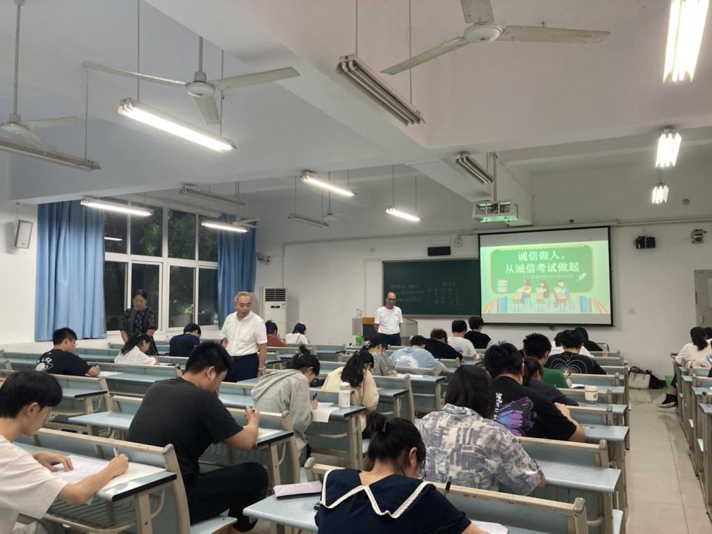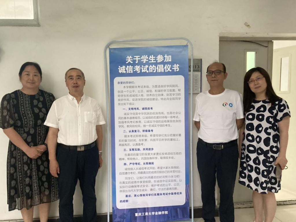 2022年6月23日下午,76net必赢线路检测中心在兰花湖校区20113教室开展第四届“免监考”诚信考试,持续推动考试思政,营造优良学风和诚信考风。参加本次“免监考”的班级为21CFA1班,考试科目为《金融学》。教务处处长骆东奇、副处长韦晓兰,76net必赢线路检测中心党委书记、副院长王建明,党委副书记、院长王兰,党委副书记、纪委书记余新到场巡考。