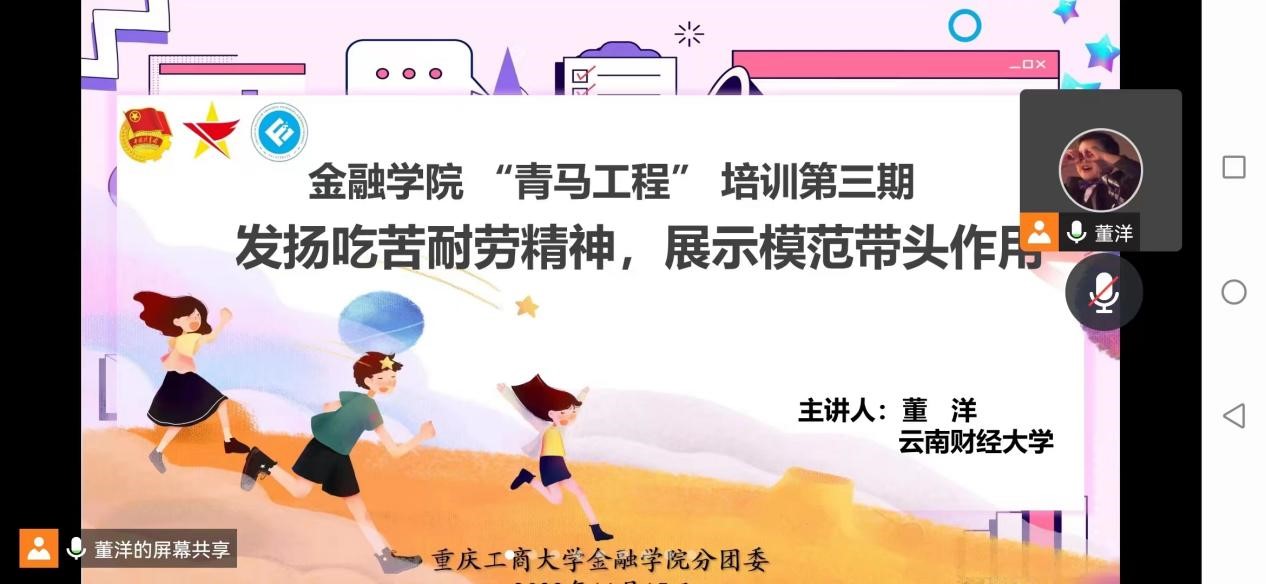11月17日,为培养学生干部能吃苦耐劳精神,展示其模范带头作用,云南财经大学董洋校友为76net必赢线路检测中心分团委学生会骨干、青年志愿者服务队骨干和21级班团干部开展了“发扬吃苦耐劳精神,展示模范带头作用”的专题培训。