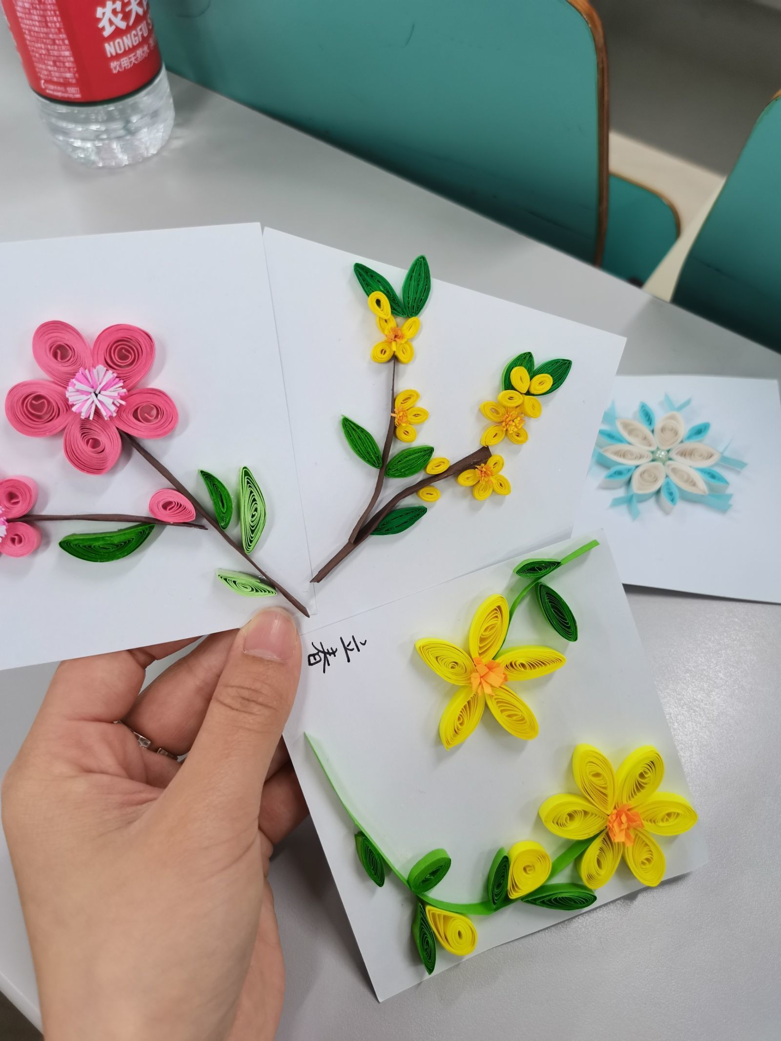 衍纸花花,在初夏时节,和大家在这里相遇,一起制作精美的衍纸花,表达者着对夏天到来的喜悦,鲜花总是转瞬即逝,为了保留住他们最美丽的瞬间,我们选择用衍纸,保留住它最美丽的瞬间,同学们如火如荼的进行着,手也从不熟练变得逐渐熟练。